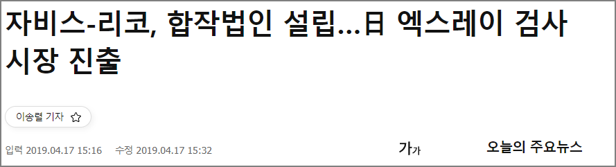 아래 그림은 일본 리코사와 합작해서 까다롭기로 소문난 일본 엑스레이 검사장비 시장에 진출한다는 기사들입니다.