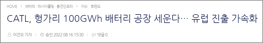 그래서 기사내용을 면밀히 검토해 보다 몆 가지 근거를 가지고 조사해 본 결과 그 업체는 CATL이라는 것을 알게 되었습니다.