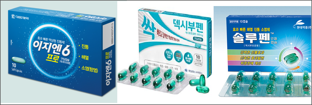 여기에는 "이지앤 6" "솔루펜" "덱시부펜" 이런 약들이 있습니다