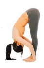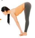 ③ 숨을 내밷으며 배에 힘을 주고 허리를 굽히고 양 손바닥은 바닥을 짚어 줍니다