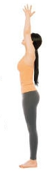 ② 숨을 서서히 들이마시면서 양팔을 위로 곧게 뻗은 뒤 양 손바닥을 마주합니다.