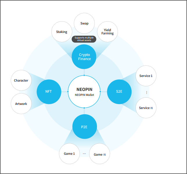 다른 게임사의 코인들은 게임에만 집중하던 반면 네오위즈는 자사 플랫폼인 네오핀 위에 게임은 물론 디파이, NFT를 비롯해 게임 외적인 활동 즉 서비스 행위를 토큰을 통해 보상해 주는 s2e 개념을 도입한 것인데요. 이렇게 네오핀은 본격적으로 사업을 진행하기 시작했습니다.