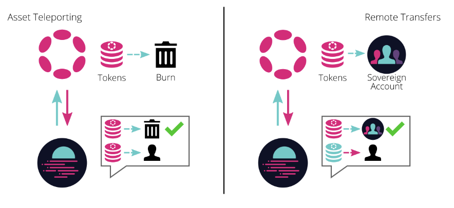 폴카닷은 CM(Cross-Chain Message Passing)이라는 기술을 통해 블록체인 간에 데이터와 자산을 안전하게 전송할 수 있습니다. CM은 블록체인 간의 합의 메커니즘을 통합하여 데이터와 자산의 무결성을 보장하게 되는데 , CM은 다음과 같은 두 가지 기본 요소로 구성됩니다.