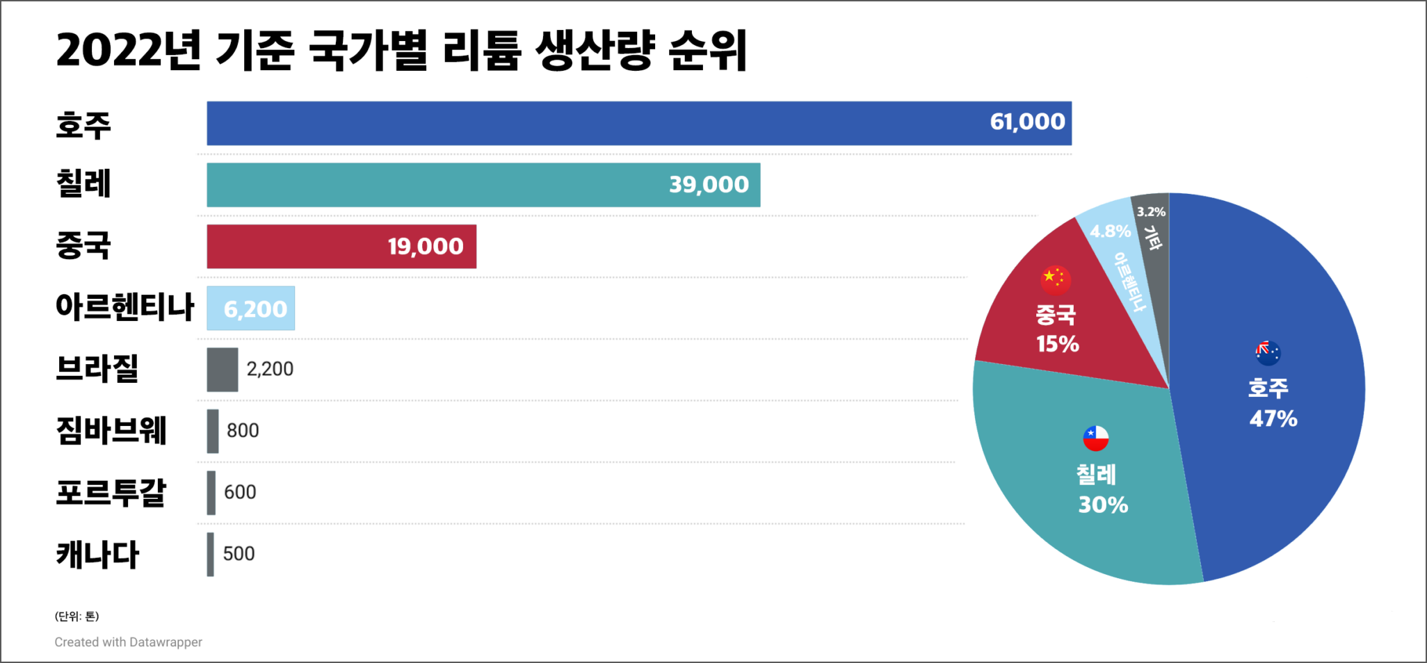리튬은 지금 세계에서 가장 인기 있는 자원입니다.휴대폰, 전기차에 리튬이온 배터리가 사용되기 때문입니다. 그래서 2차 전지 시대의 하얀 석유라 불리고 있죠. 우리나라가 2023년에 수입한 중국산 리튬만 7조 원에 달하는데요. 그렇다고 그 모든 리튬이 다 중국에서 채굴된 것은 아닙니다.