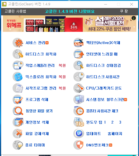 고클린 컴퓨터 최적화는 부팅하자마자 해주시는 게 컴 사용을 위해서